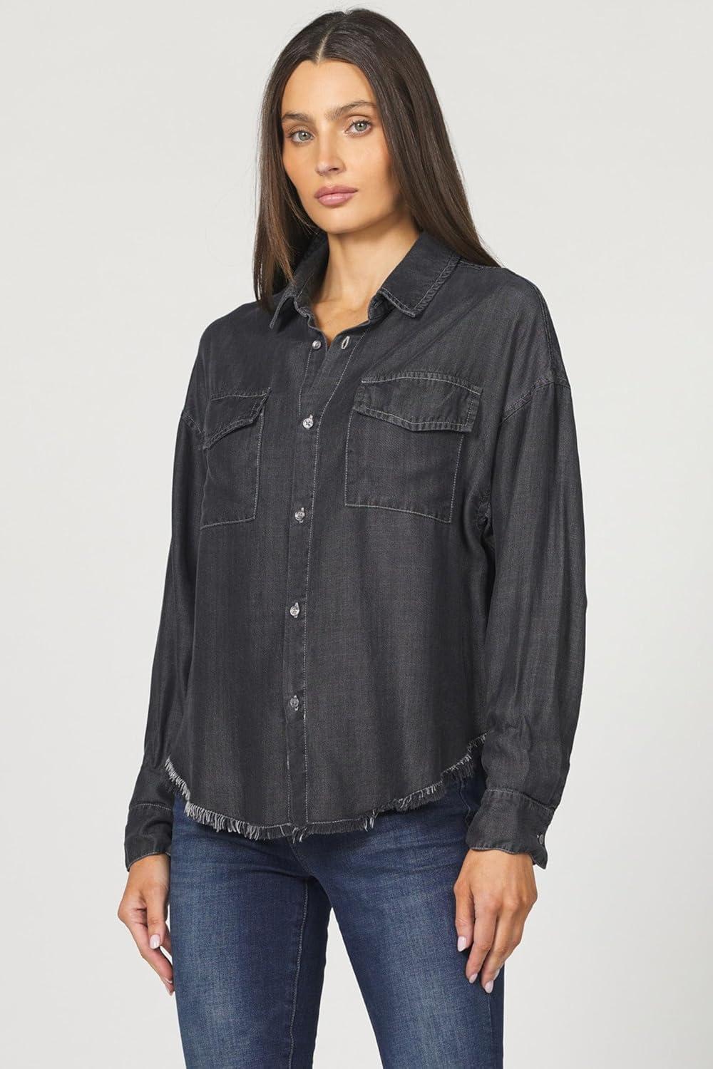 DEAR JOHN Adrianna Shirt Long Sleeve Oversized Button Up Polished Silhouette – Ash Tencel – Medium