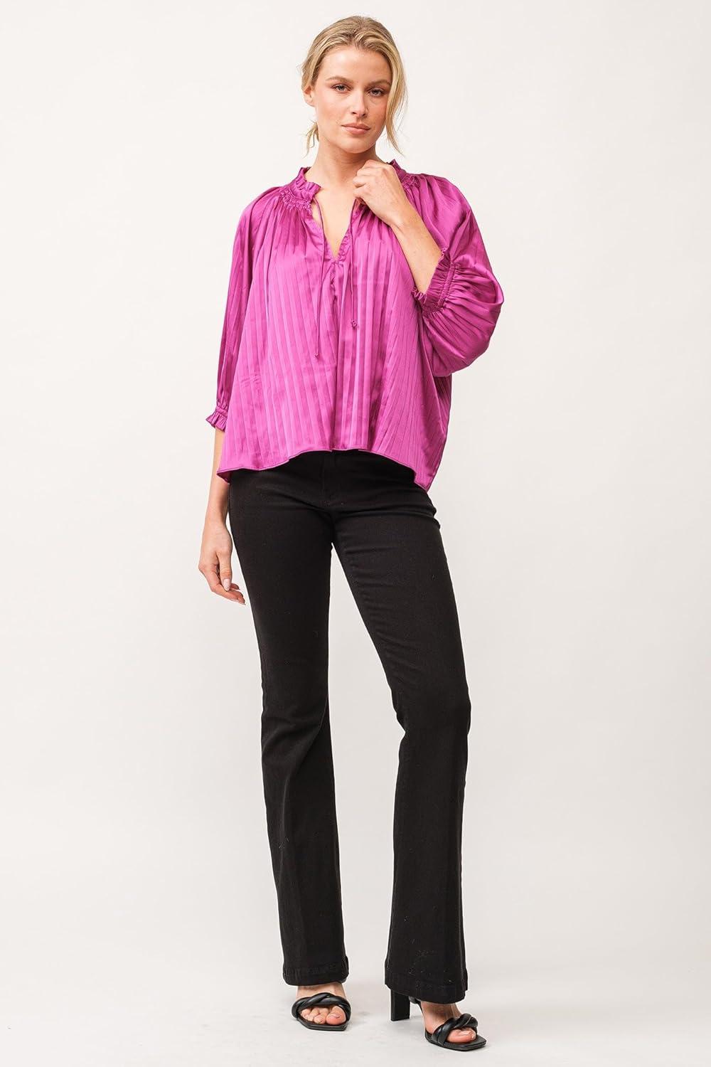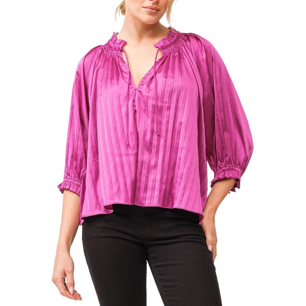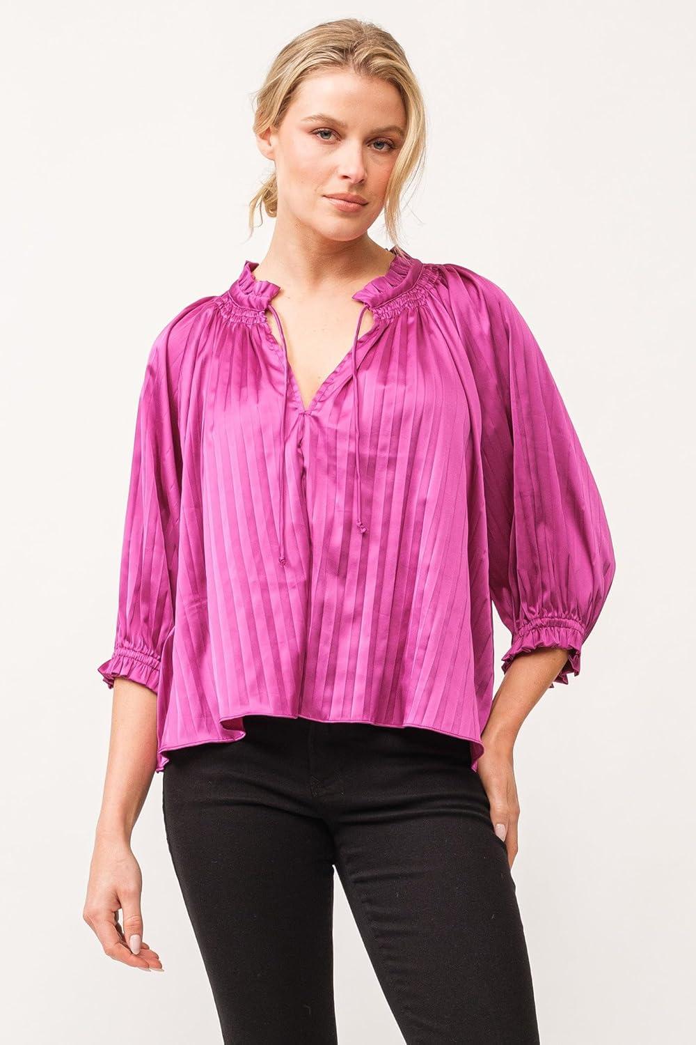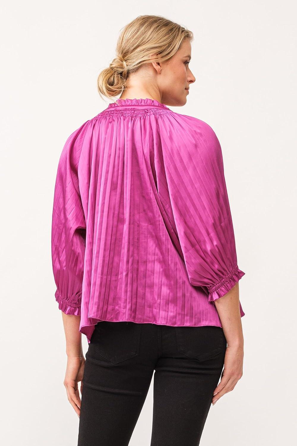 DEAR JOHN Anais Ruched Neck 3/4 Sleeve Pleated Women’s Top(Dahila Mauve)
