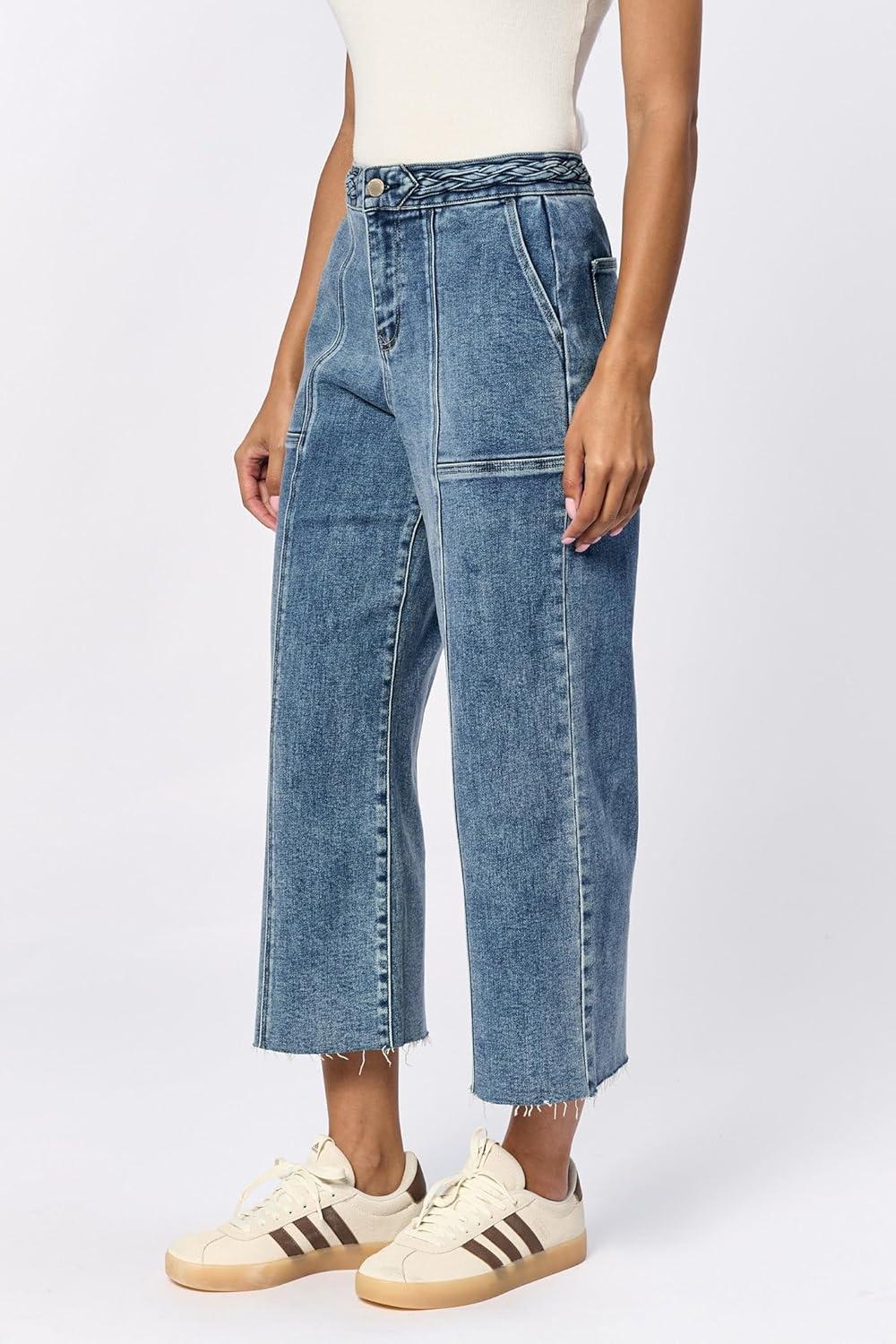 DEAR JOHN Audrey Wide Leg Jeans Women’s High Rise Cropped Color Denim Comfort Stretch Clean Hem Utility Inspired Tailored Fit(Maryland)