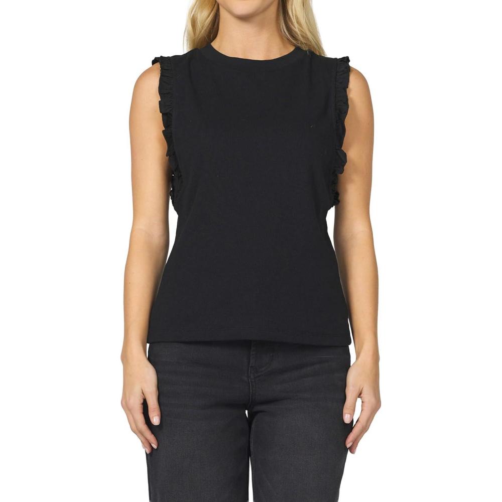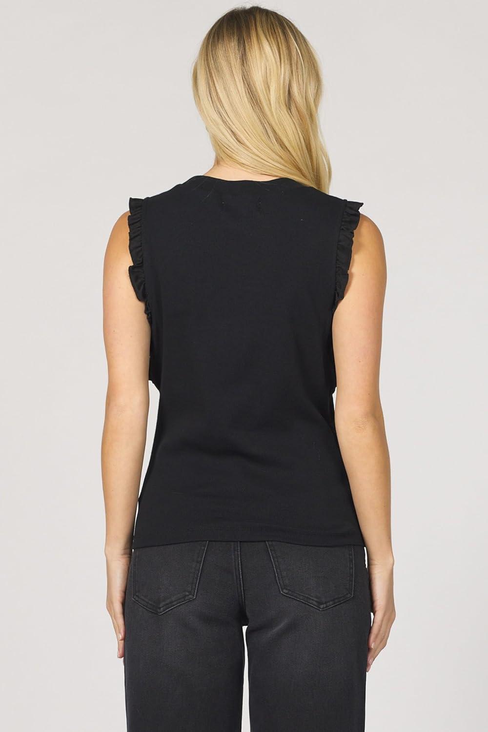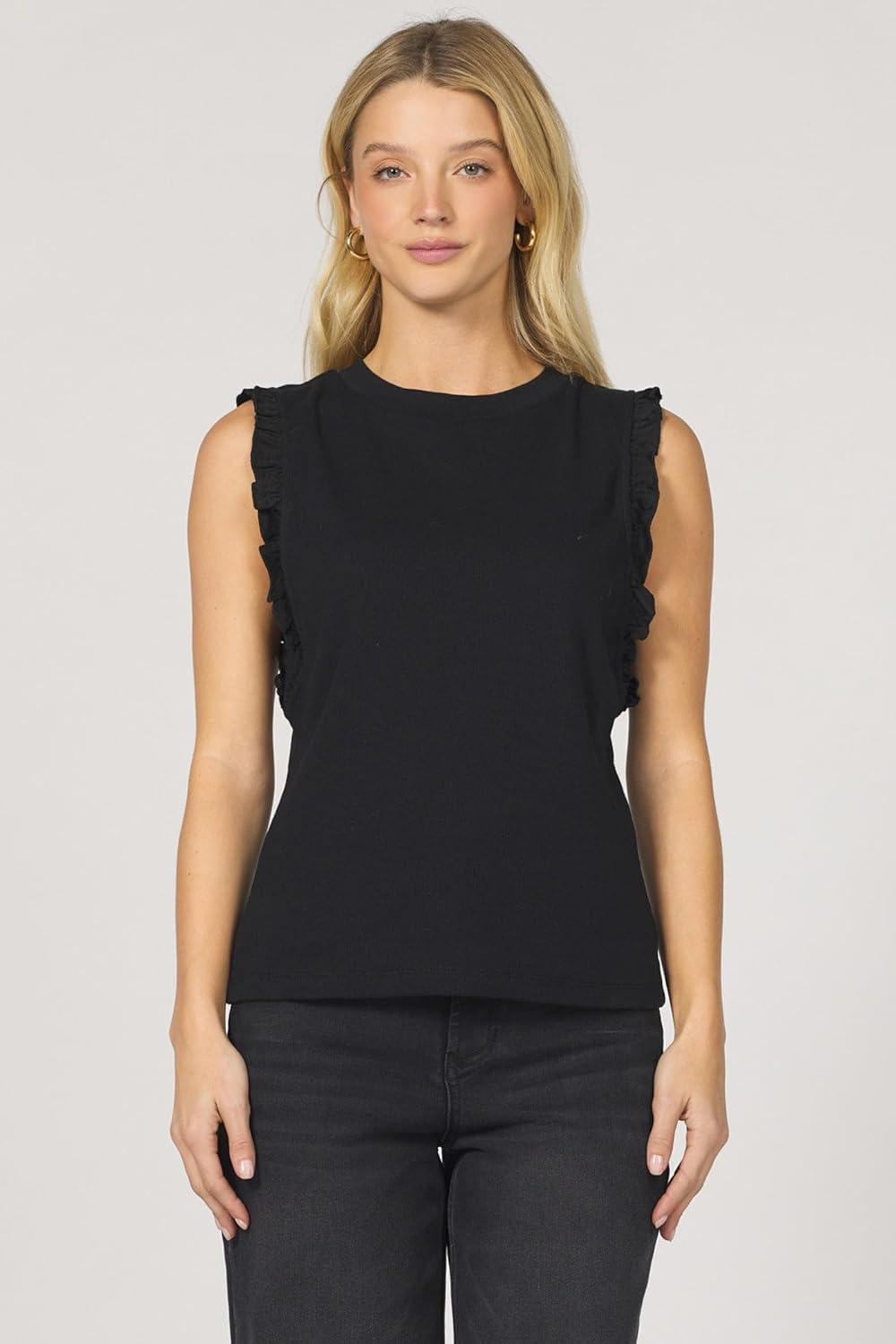 Be the first to review “DEAR JOHN Bridgette Top Sleeveless Ruffle Detail Slim Fit Crew Neck Polished Casual Blouse Soft Stretch Knit(Jet Black)” Cancel reply