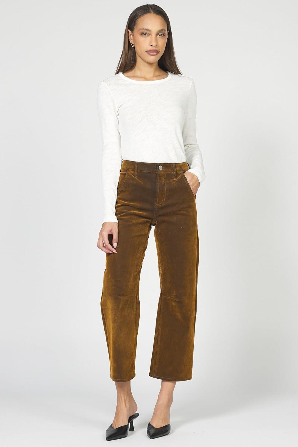 DEAR JOHN Lasso Barrel Fit Jeans Women’s High Rise Cropped Baggy Comfort Stretch Clean Hem Cargo Pocket Denim(Brown)