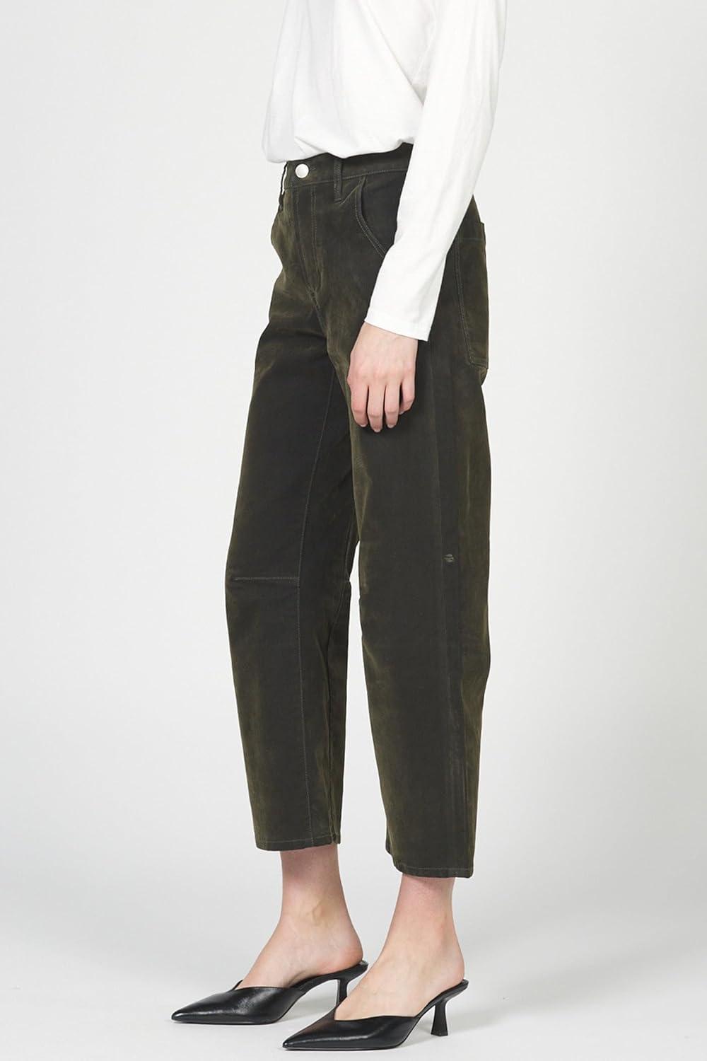 DEAR JOHN Lasso Barrel Fit Jeans Women’s High Rise Cropped Baggy Comfort Stretch Clean Hem Cargo Pocket Denim(Olive)