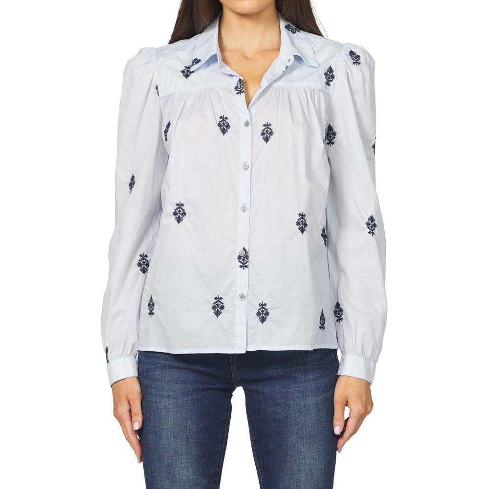 imageDEAR JOHN Nasrin Shirt Womens Embroidered Long Sleeve ButtonUp Cotton Classic Fit BlouseIndependence Blue