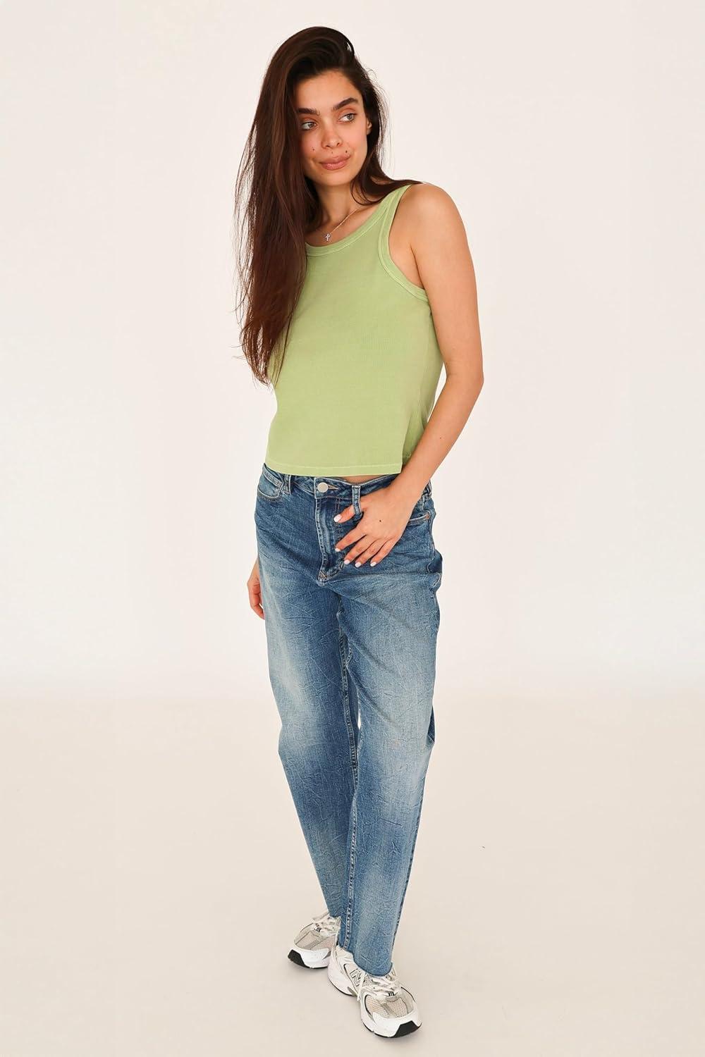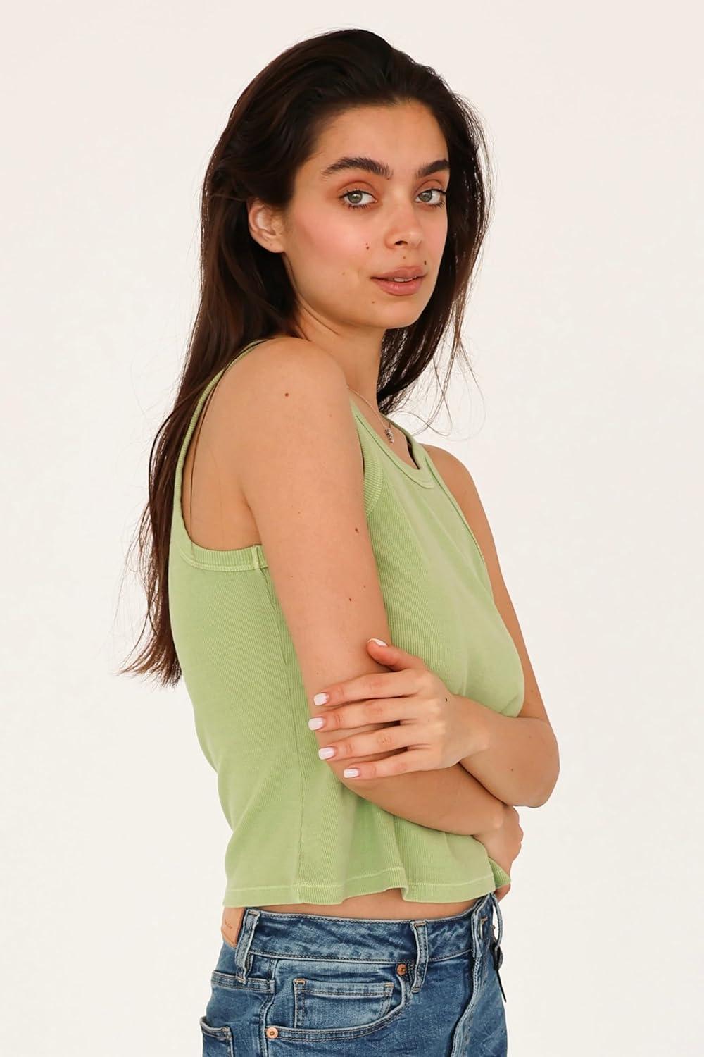 DEAR JOHN Tamia Cropped Racer Back Sleeveless Crew Neck Women’s Tank Top Fitted Knit(Nephrite)