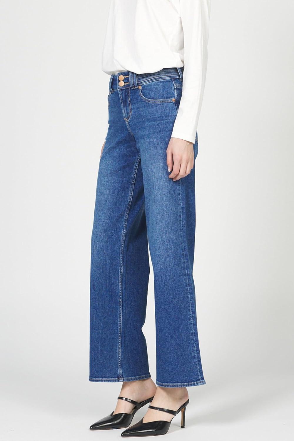 DEAR JOHN Audrey Wide Leg Jeans Women’s High Rise Denim Clean Hem Tailored Utility Pocket Pants Sleek Modern Silhouette(Moon Shade)