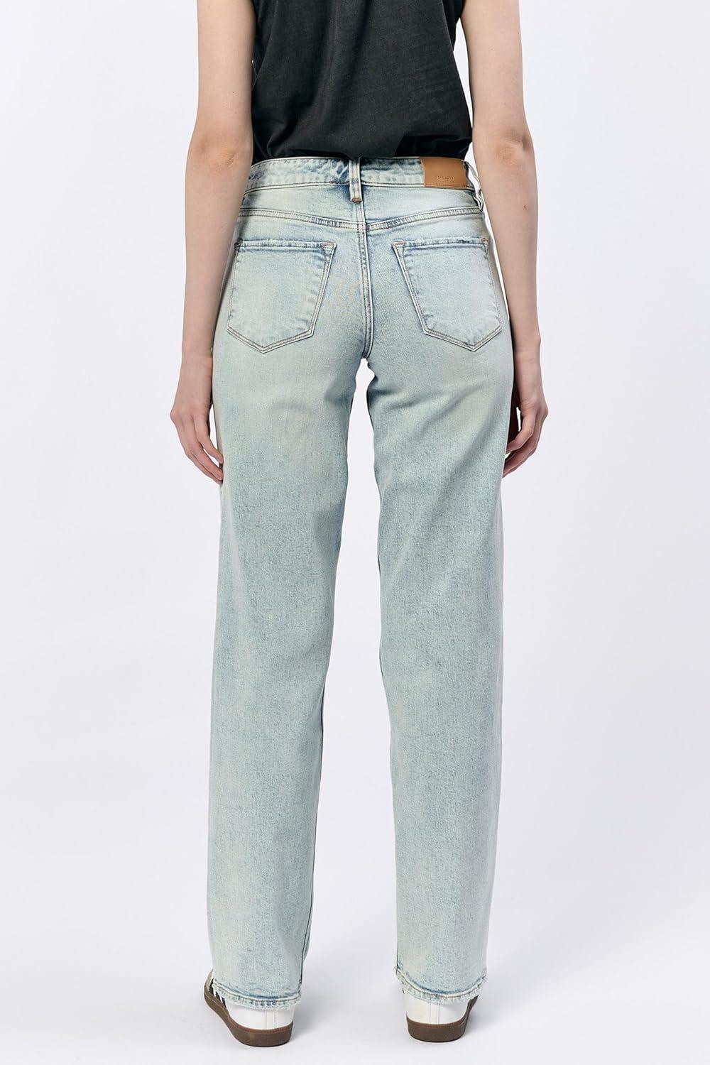 DEAR JOHN Taylor Straight Leg Jeans Women’s High Rise Clean Hem Denim(Waves)