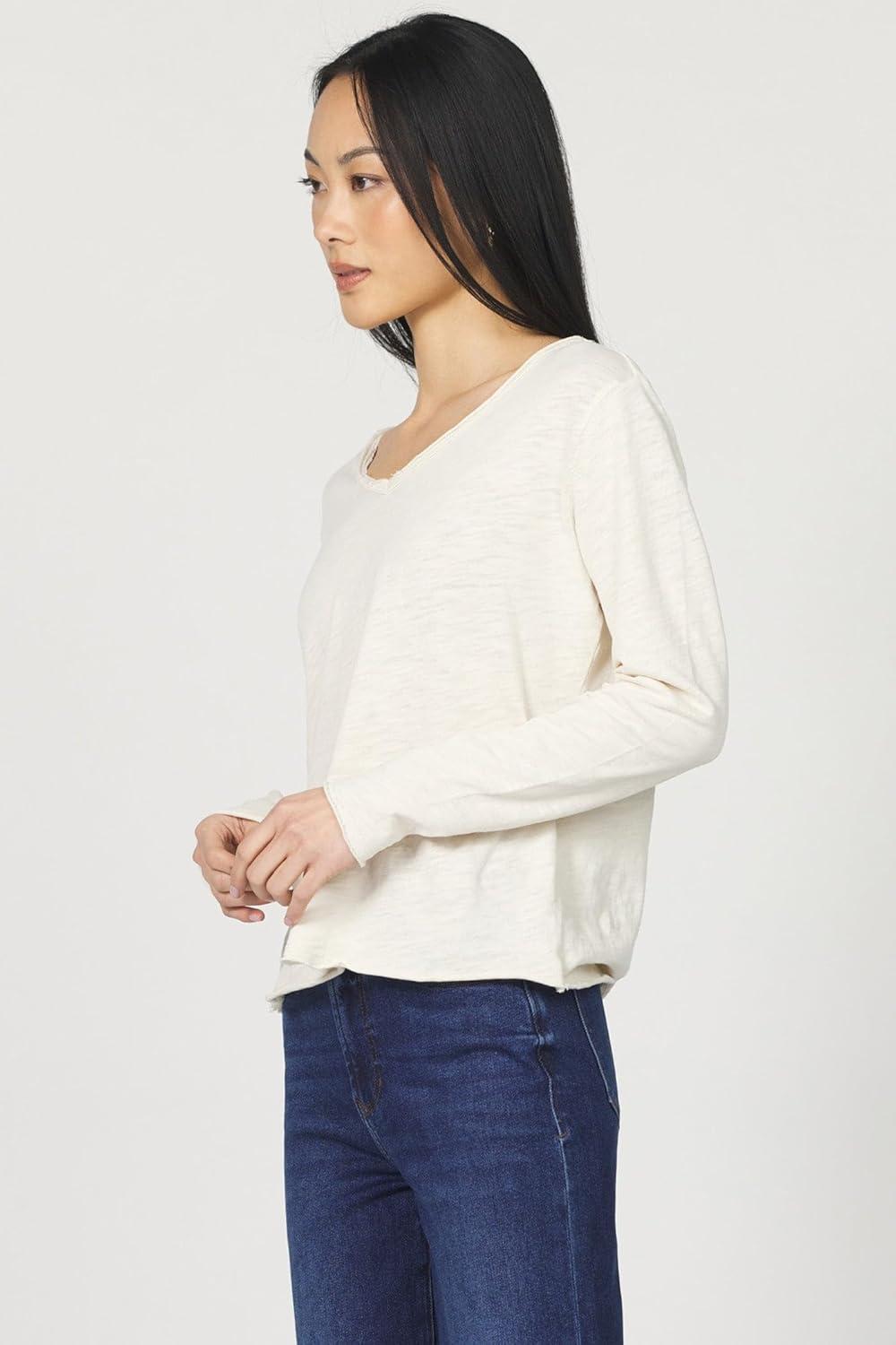 Don’t break the bank! Get the DEAR JOHN Vanya Long Sleeve Tee Slub V-Neck Relaxed Fit Cotton Top with Raw Edge Detail(Whitecap Gray) you want at a price you can afford during our markdown sale.