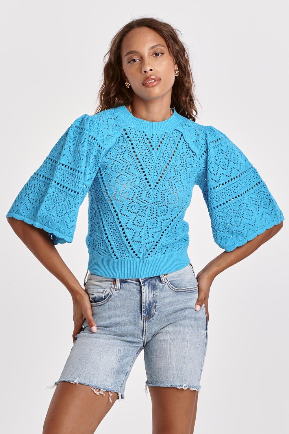 DEAR JOHN Women’s Bailey Wing Sleeve Sweater(Adriatic Sea)