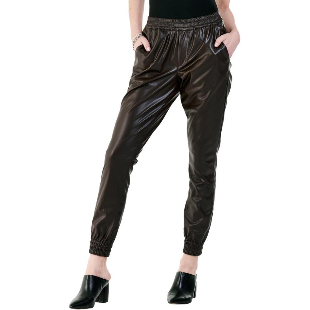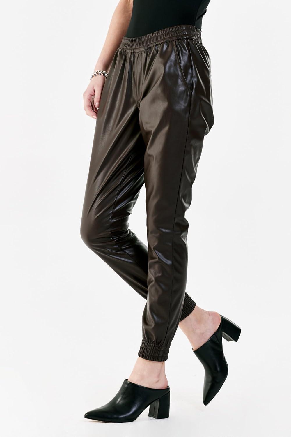 DEAR JOHN Women’s Cropped Jogger Pants(Coffee Vegan Leather)