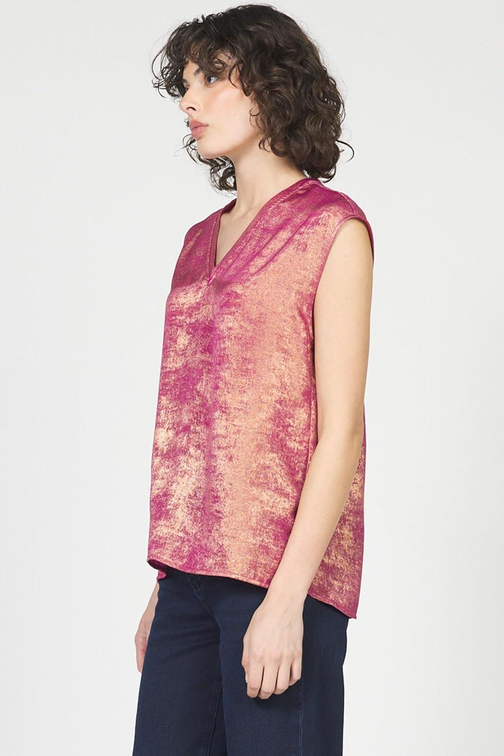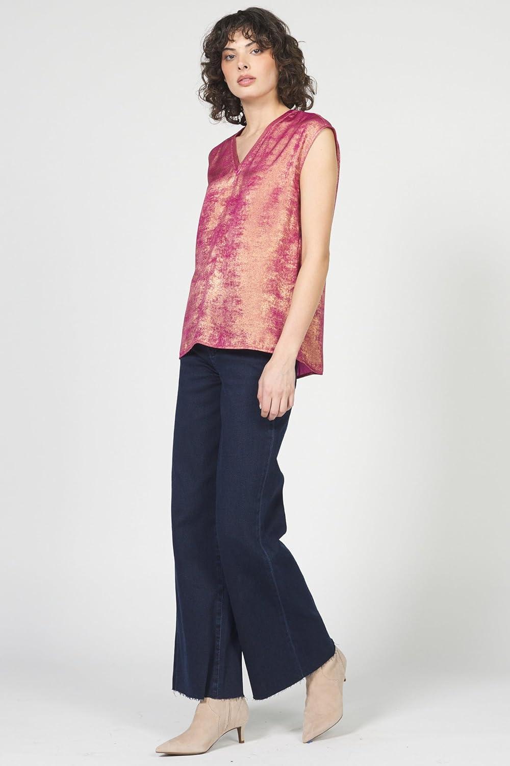 DEAR JOHN Yanis Women’s Sleeveless V-Neck Top Relaxed Fit(Beaujolais Gold)