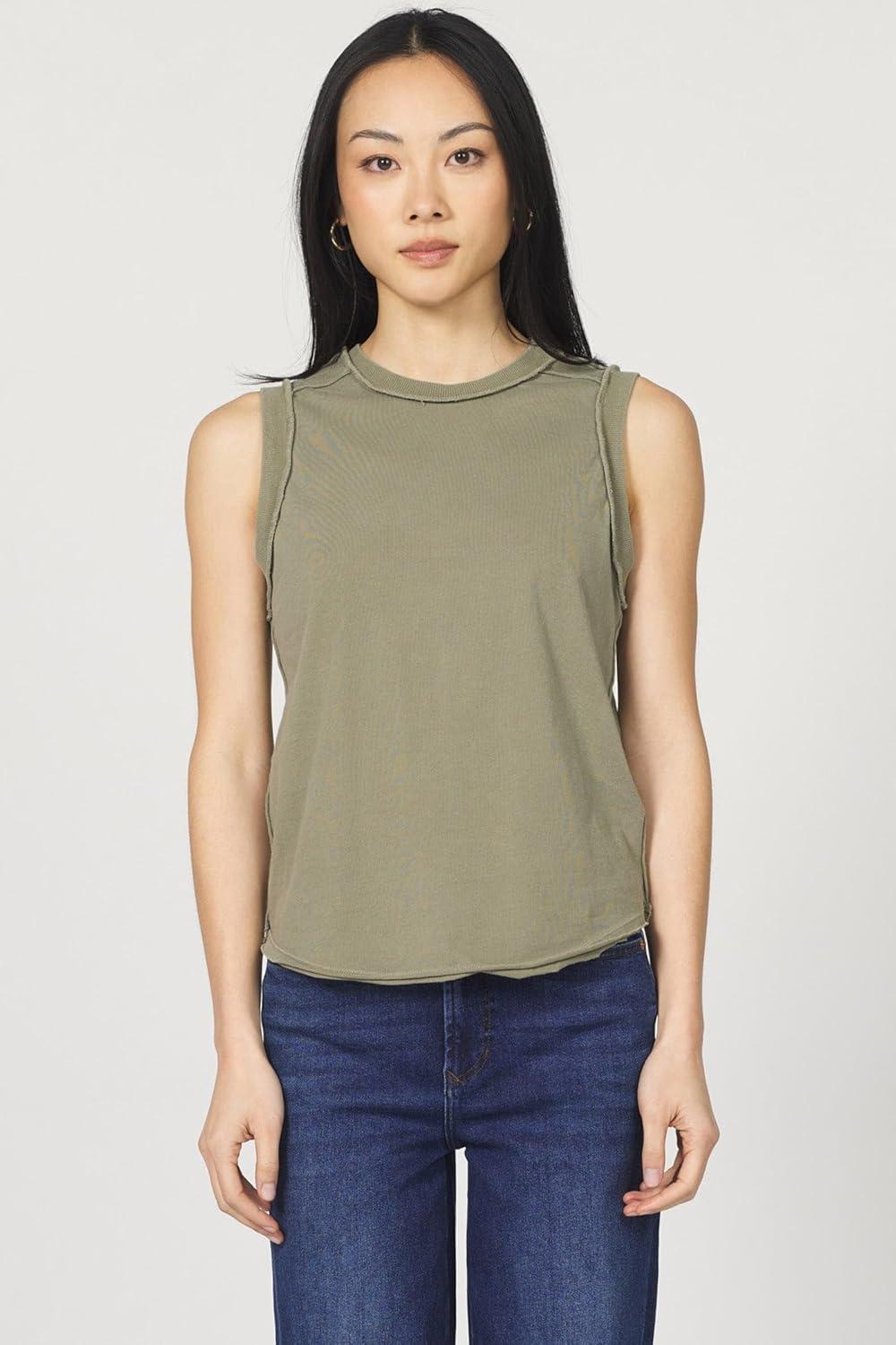 DEAR JOHN Zo Tee Slub Round Neck Sleeveless Relaxed Fit Cotton Top with Back Seam Detail – Vetiver – Large
