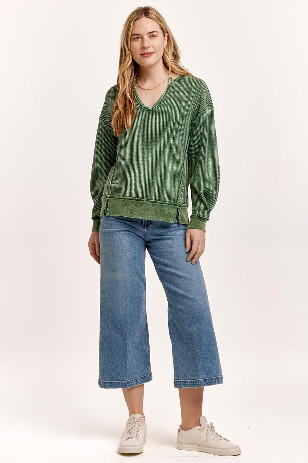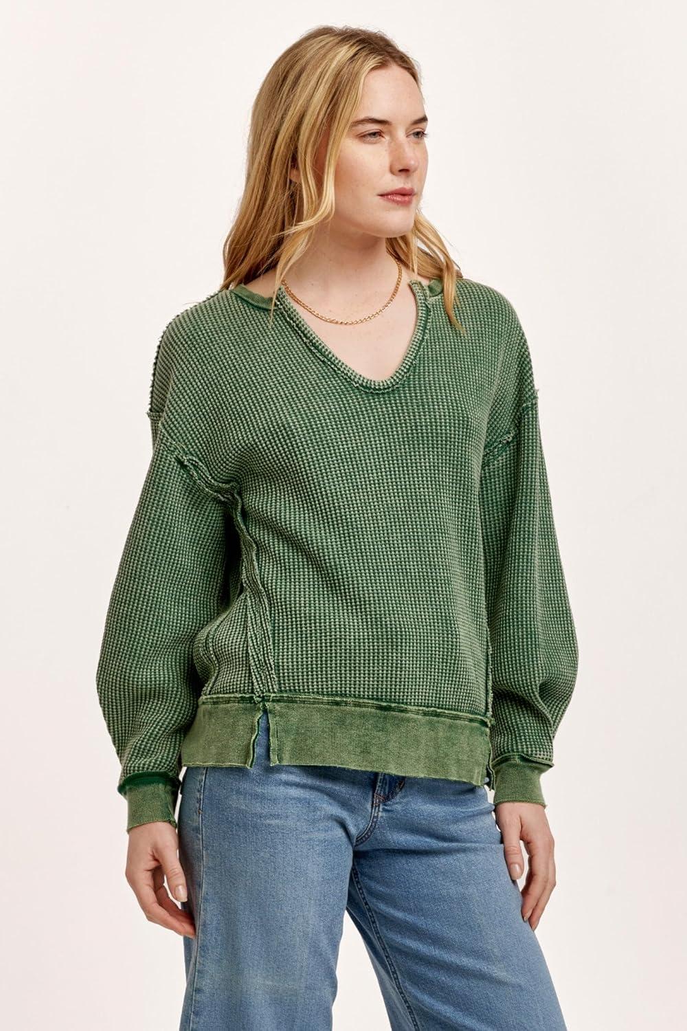 Introducing the ZYRA Thermal Oversized Long Sleeve Drop Shoulder Top – a must-have for women who love comfort with a bold edge. Crafted from a soft rayon blend, this thermal top features a relaxed oversized fit, perfect for effortless layering or standalone wear. Its drop shoulder design, raw seams, and playful cut-outs add an edgy vibe, making it a standout piece in your wardrobe. The v-neckline and contrast rib bands at the cuffs and waist enhance its casual style, offering a versatile look that transitions easily from casual days to nights out. Solid color knit on relaxed fit ensures both style and comfort.